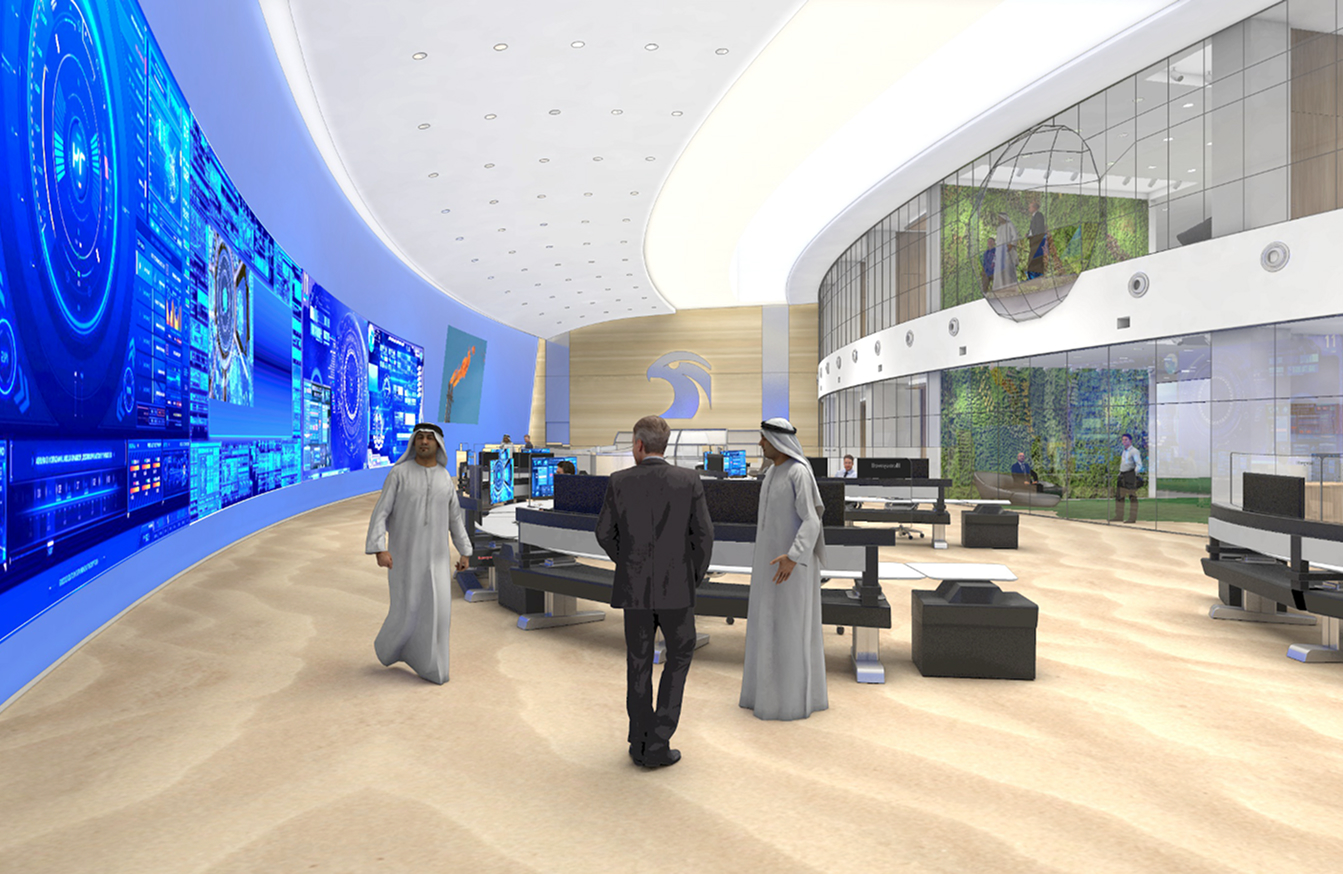 Panorama is the first Digital Command Center in the Oil&Gas sector, and it is located on the 37th floor of the Adnoc group headquarters. The name “Panorama”  refers both to the visualisation of a large quantity of data, and the breathtaking view over the United Arab Emirates capital. Its aim is to support Adnoc’s efforts to become a more efficient and streamlined organization as it pushes ahead with its transformation.